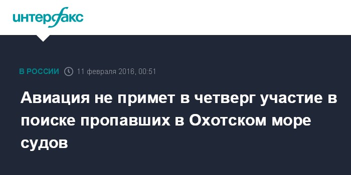 Авиация не примет в четверг участие в поиске пропавших в Охотском море судов