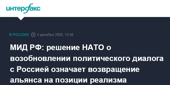 МИД РФ: решение НАТО о возобновлении политического диалога с Россией означает возвращение альянса на позиции реализма