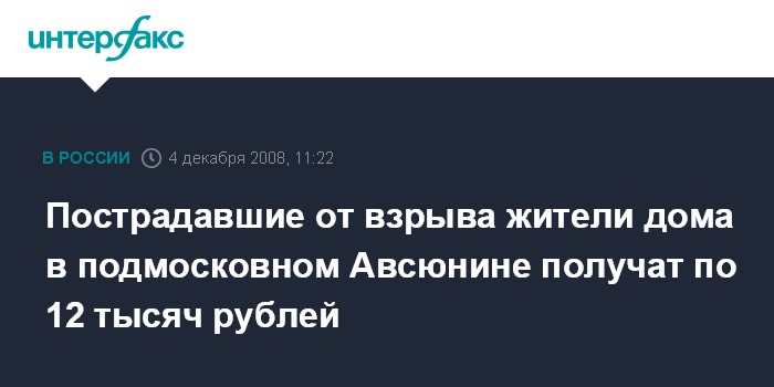 Пострадавшие от взрыва жители дома в подмосковном Авсюнине получат по 12 тысяч рублей