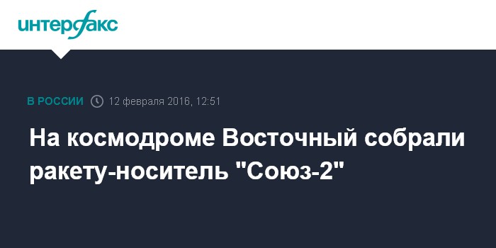 Москва. 12 февраля. INTERFAX.RU - Завершена сборка ракеты-носителя "Союз-2", предназначенной для первого запуска с нового космодрома "Восточный", написал вице-премьер России Дмитрий Рогозин в твиттере в пятницу.