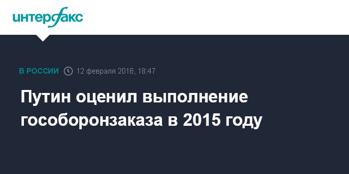 Москва. 12 февраля. INTERFAX.RU - Президент России Владимир Путин констатирует позитивную динамику выполнения гособоронзаказа.