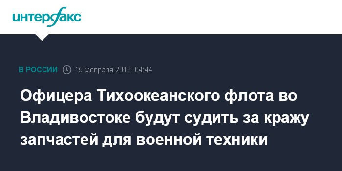 Офицера Тихоокеанского флота во Владивостоке будут судить за кражу запчастей для военной техники