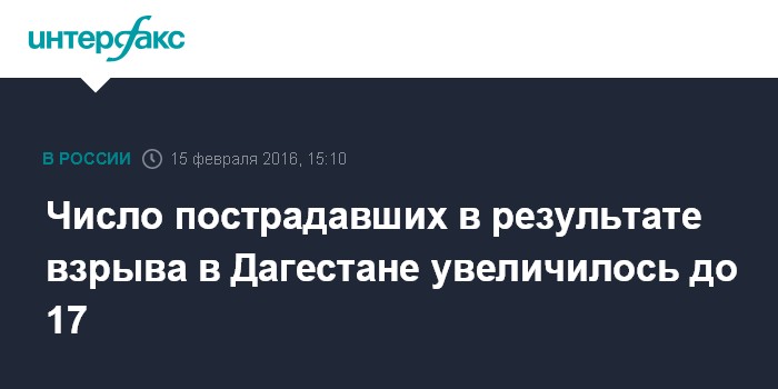 Число пострадавших в результате взрыва в Дагестане увеличилось до 17
