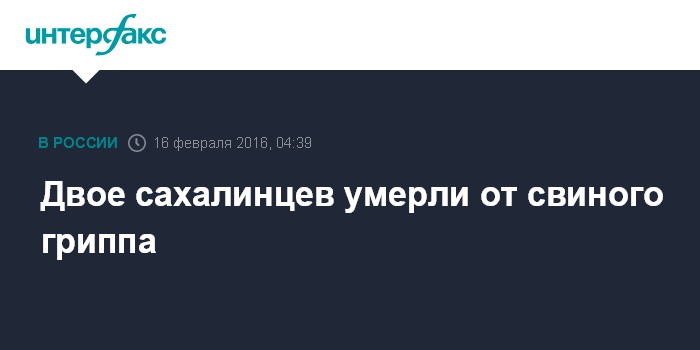 Москва. 16 февраля. INTERFAX.RU - Двое жителей Сахалина умерли в начале февраля от осложнения, вызванного свиным гриппом, сообщила во вторник на пресс-конференции начальник отдела эпиднадзора ТУ Роспотребнадзора по Сахалинской области Галина Ковтонюк. "В обоих случаях - отсутствовала прививка от гриппа", - отметила представитель ведомства.