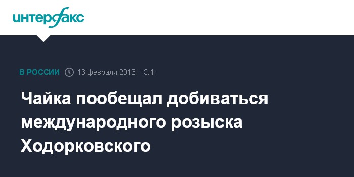 Отвечая на вопрос "Интерфакса", будет ли Генпрокуратура обжаловать решение генерального секретариата Интерпола об отказе во включении Ходорковского в международный розыск как преследуемого по политическим мотивам, Чайка сказал: "Обязательно. Мы предпримем все необходимые для розыска меры".