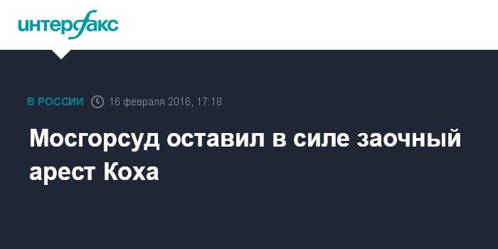 Санкция на заочный арест Коха была выдана Лефортовским судом Москвы 24 декабря 2015 года.