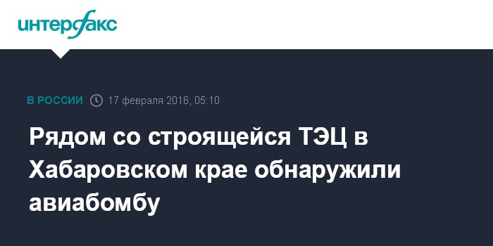 Рядом со строящейся ТЭЦ в Хабаровском крае обнаружили авиабомбу
