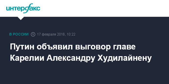 Москва. 17 февраля. INTERFAX.RU - Президент России Владимир Путин подписал указ "Об объявлении выговора главе Республики Карелия", сообщает в среду пресс-служба главы государства.
