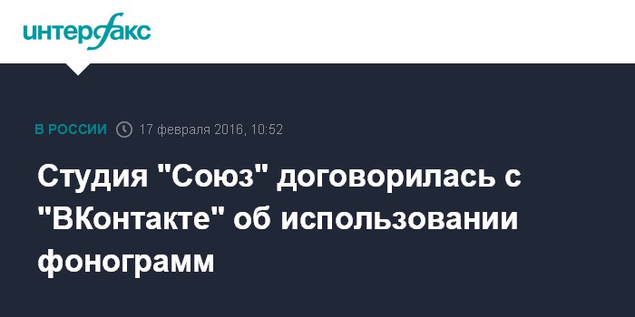Студия "Союз" договорилась с "ВКонтакте" об использовании фонограмм