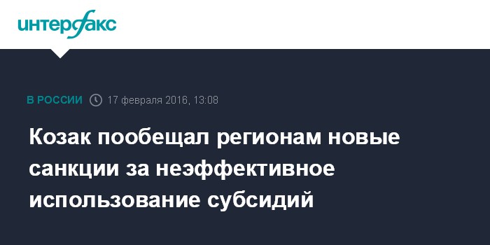 "Такая политика будет проводиться последовательно, для того чтобы, получая деньги и принимая на себя обязательства, руководители соответствующих регионов выполняли в точно установленные сроки те задачи, которые решаются с помощью субсидий из федерального бюджета", - сказал Козак.