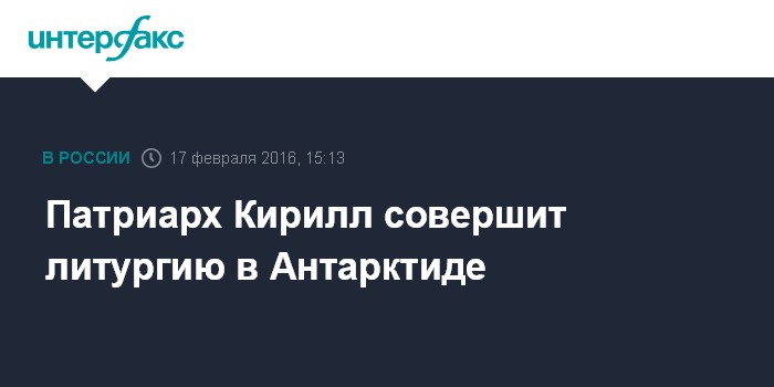 Москва. 17 февраля. INTERFAX.RU - Патриарх Московский и всея Руси Кирилл вылетел из чилийского Пунта-Аренаса в Антарктиду, где совершит литургию на российской станции Беллинсгаузен и встретится с полярниками.