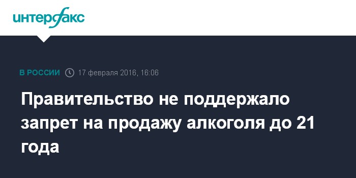 Правительство не поддержало запрет на продажу алкоголя до 21 года