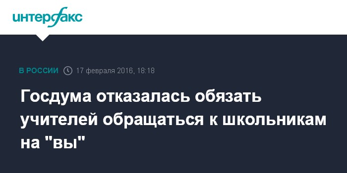 Госдума отказалась обязать учителей обращаться к школьникам на "вы"