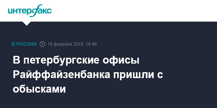 В петербургские офисы Райффайзенбанка пришли с обысками