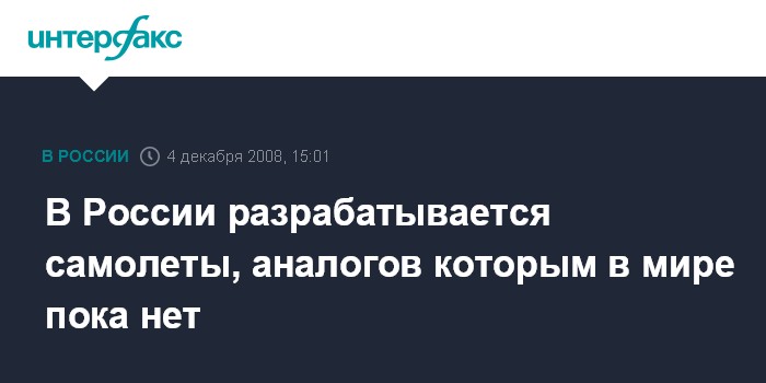 В России разрабатывается самолеты, аналогов которым в мире пока нет