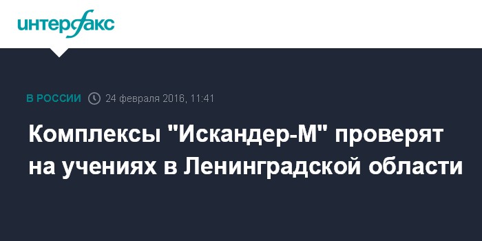 Москва. 24 февраля. INTERFAX.RU - Ракетное соединение Западного военного округа (ЗВО), оснащенное оперативно-тактическими комплексами "Искандер-М", приступило к плановым полевым занятиям на одном из специализированных полигонов в Ленинградской области.