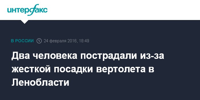 Москва. 24 февраля. INTERFAX.RU - Пилот и пассажир пострадали в результате жесткой посадки вертолета в Ломоносовском районе Ленинградской области, сообщили "Интерфаксу" в пресс-службе ГУ МЧС региона.