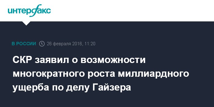 СКР заявил о возможности многократного роста миллиардного ущерба по делу Гайзера