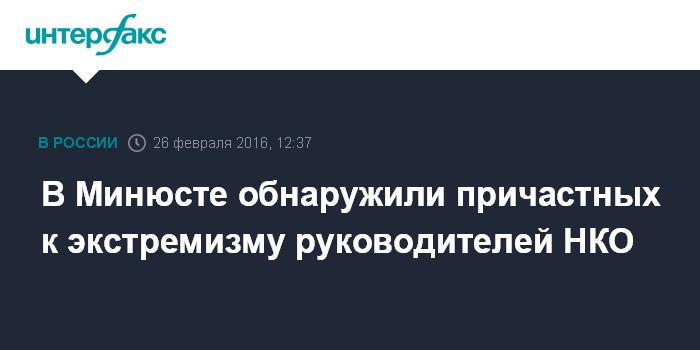 Москва. 26 февраля. INTERFAX.RU - В Минюсте России заявили о выявлении экстремистов среди учредителей и руководителей ряда НКО, действующих в стране.