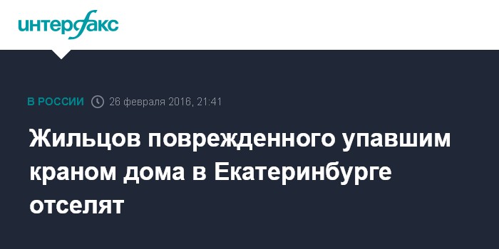 Москва. 26 февраля. INTERFAX.RU - Жилой дом в Екатеринбурге, на который упал башенный кран, обесточен и отключен от водоснабжения, производится расселение жильцов. Об этом сообщила "Интерфаксу" директор по маркетингу ЗАО "Форум - групп" (застройщик дома, на стройплощадке которого находился кран) Анастасия Полухина.