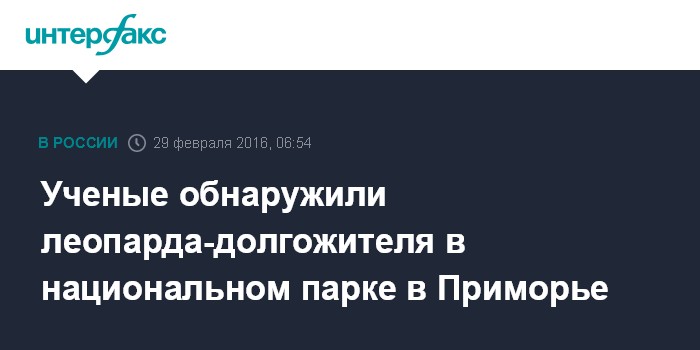 Москва. 29 февраля. INTERFAX.RU - Специалисты обнаружили в приморском национальном парке "Земля леопарда" третьего леопарда-долгожителя, которому не менее 16 лет, тогда как в среднем, по мнению ученых, представители этого подвида живут 12 лет.