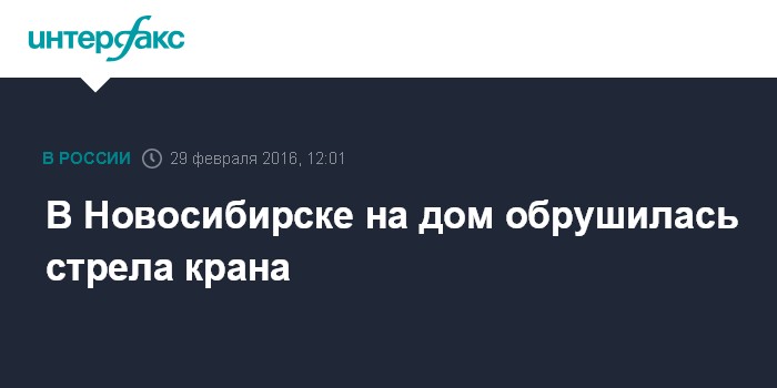 Москва. 29 февраля. INTERFAX.RU - Стрела гусеничного крана обрушилась в понедельник в Центральном районе Новосибирска на жилой дом, сообщили "Интерфаксу" в пресс-службе ГУ МЧС России по региону.