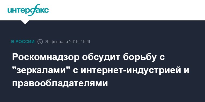 Москва. 29 февраля. INTERFAX.RU - Роскомнадзор обсудит предложения по блокировке "зеркал" заблокированных сайтов с противоправным контентом с представителями индустрии, заявил начальник правового управления Роскомнадзора Борис Едидин.