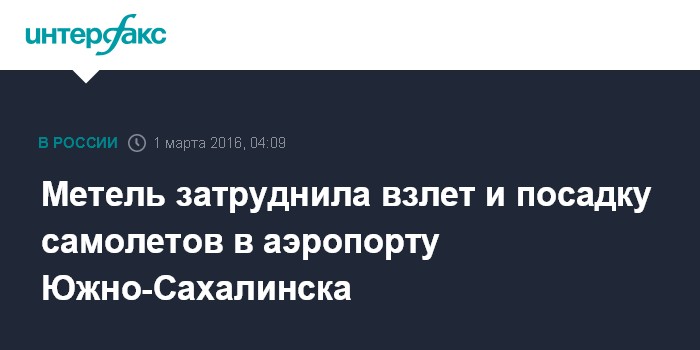 Москва. 1 марта. INTERFAX.RU - Аэропорт Южно-Сахалинска работает по фактической погоде, метель затрудняет выполнение рейсов, сообщает пресс-служба предприятия.