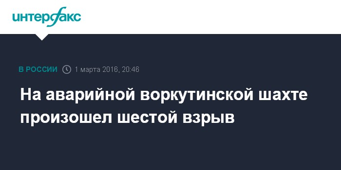 Москва. 1 марта. INTERFAX.RU - Ещё один взрыв произошёл на шахте "Северная" в Воркуте, сообщили "Интерфаксу" в пресс-службе МЧС России.