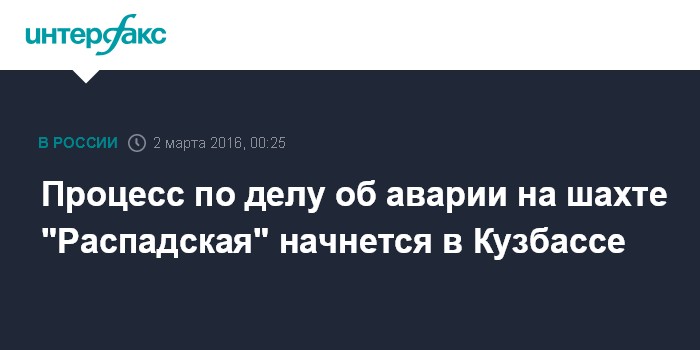 Москва. 2 марта. INTERFAX.RU - Предварительные слушания уголовного дела по факту аварии на шахте "Распадская" в Кемеровской области, в которой погиб 91 человек, еще 133 человека получили травмы различной степени тяжести, начнутся в Междуреченском городском суде в среду.