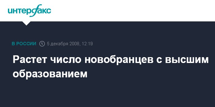 По его словам, во время предыдущего призыва, который проходил весной текущего года, 20% граждан имели высшее образование. В.Смирнов отметил, что Генштаб не может не радовать подобный показатель, так как это - намного больше, чем было в 2007 г. и предыдущих годах. Он пояснил, что призывники с высшим образованием направляются для службы в Космические войска, Ракетные войска стратегического назначения и на флот.