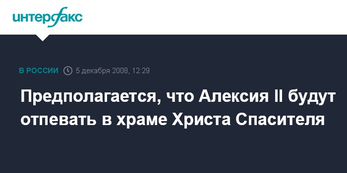 Москва. 5 декабря. INTERFAX.RU - Отпевание скончавшегося патриарха Московского и всея Руси Алексия Второго скорее всего пройдет в храме Христа Спасителя в Москве, сообщили "Интерфаксу" источники в Православной церкви.