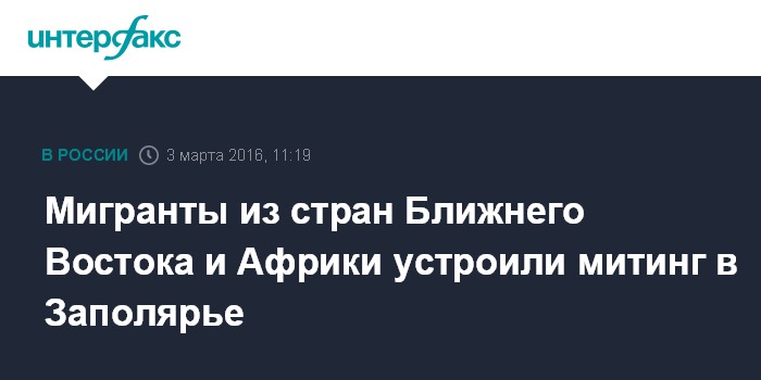 Москва. 3 марта. INTERFAX.RU - В Кандалакше на юге Мурманской области вблизи российско-финской границы прошла немногочисленная акция протеста мигрантов из стран Ближнего Востока и Западной Африки.