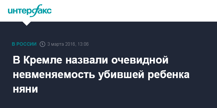 В Кремле назвали очевидной невменяемость убившей ребенка няни