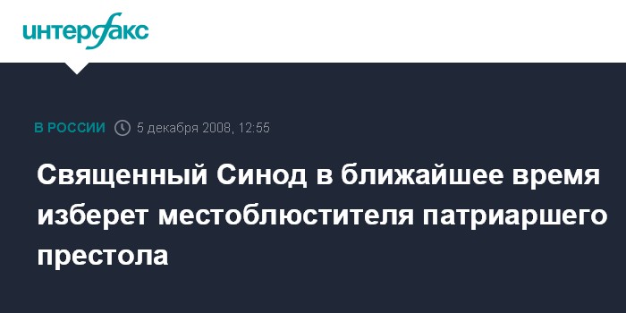Москва. 5 декабря. INTERFAX.RU - В ближайшее время пройдет экстренное заседание Священного Синода Русской православной церкви для избрания местоблюстителя патриаршего престола.