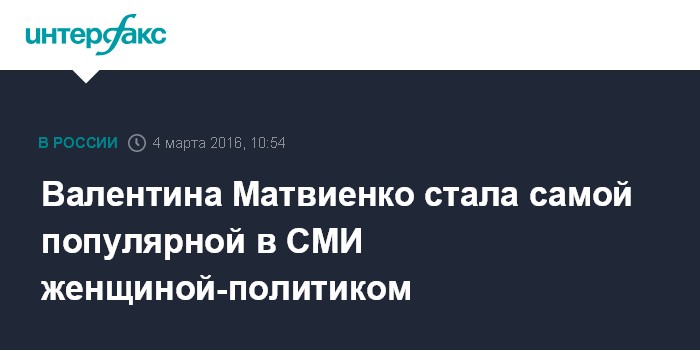 Валентина Матвиенко стала самой популярной в СМИ женщиной-политиком