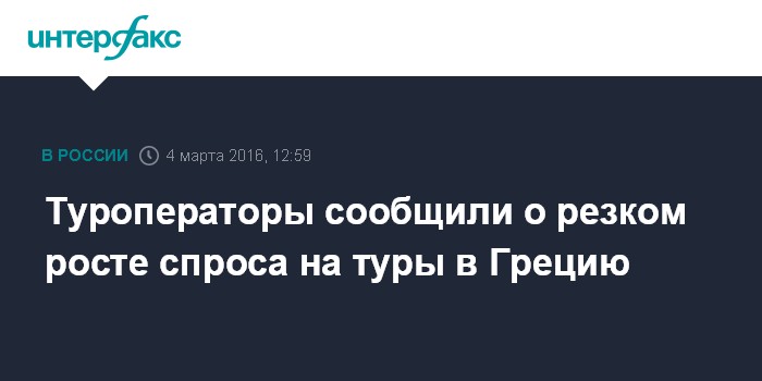 Москва. 4 марта. INTERFAX.RU - Спрос на туры в Грецию по акциям раннего бронирования в среднем вырос более чем на 20% по сравнению с прошлым годом, показывает опрос туроператоров, проведенный "Интерфаксом".