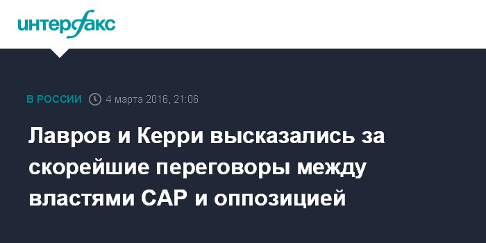 Лавров и Керри высказались за скорейшие переговоры между властями САР и оппозицией