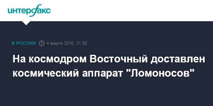 Москва. 4 марта. INTERFAX.RU - Космический аппарат "Ломоносов" доставили на космодром Восточный, сообщил вице-премьер Дмитрий Рогозин в своем твиттере.