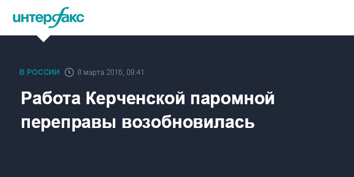 Москва. 8 марта. INTERFAX.RU - Керченская паромная переправа возобновила работу, приостанавливавшуюся во вторник утром из-за тумана, сообщила пресс-служба ГУ МЧС по Краснодарскому краю.