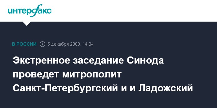 Экстренное заседание Синода проведет митрополит Санкт-Петербургский и и Ладожский