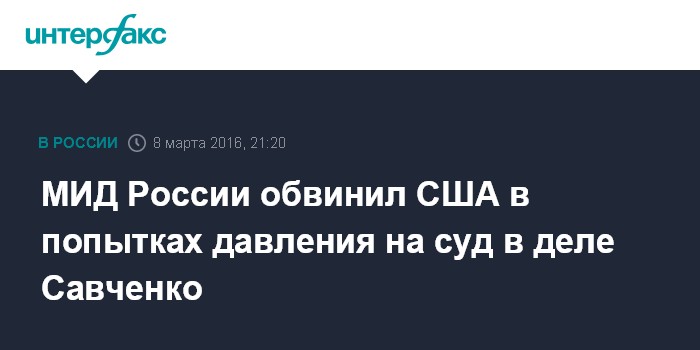 В МИД РФ полагают, что заявления Вашингтона по делу украинской летчицы Надежды Савченко являются давлением на суд.