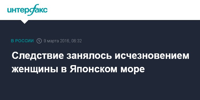 Как сообщалось, 7 марта экипаж рефрижераторного судна "Фрио Севастополис", следовавшего из Охотоморской экспедиции в порт Владивосток, обнаружил отсутствие на борту судна женщины-повара. На судне была объявлена тревога, силами ДВРЦ МЧС проводился поиск с привлечением судов, находившихся в районе происшествия. Однако поисково-спасательная операция результатов не дала.