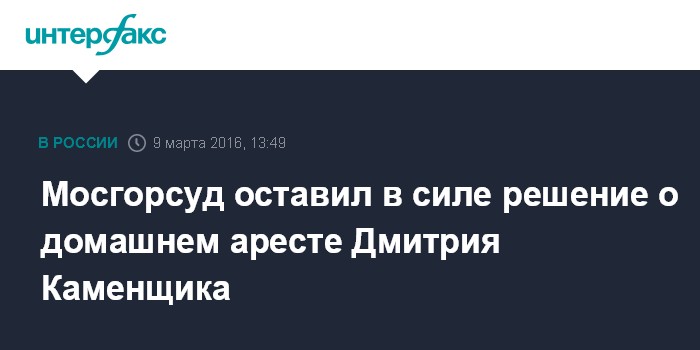 Москва. 9 марта. INTERFAX.RU - Мосгорсуд признал законным домашний арест председателя Совета директоров аэропорта "Домодедово" Дмитрия Каменщика, ключевого обвиняемого по делу об оказании услуг, не отвечающих требованиям безопасности, возбужденного в связи с терактом в аэропорту в 2011 году.