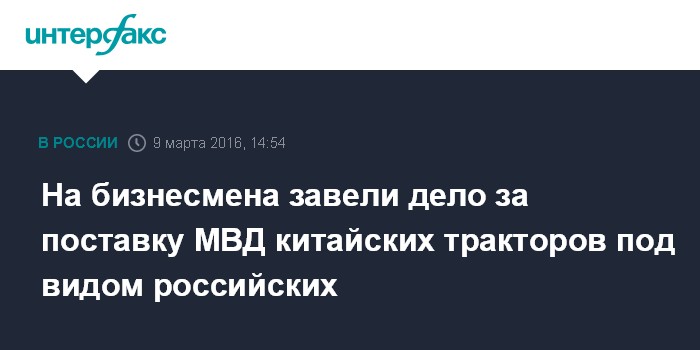 На бизнесмена завели дело за поставку МВД китайских тракторов под видом российских