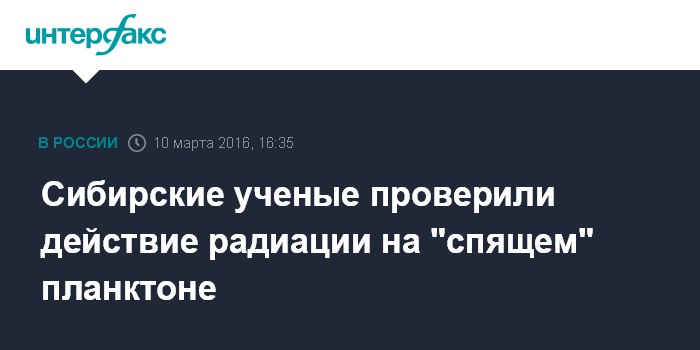 Москва. 10 марта. INTERFAX.RU - Гамма-излучение не мешает одному из видов планктона вылупляться из покоящихся яиц, установили ученые Института биофизики (Красноярск), Сибирского федерального университета (Красноярск) и Института ядерной физики имени Будкера (Новосибирск).