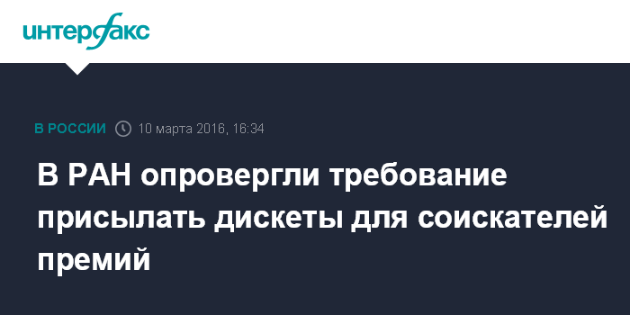 Москва. 10 марта. INTERFAX.RU - В Российской академии наук (РАН) опровергли сообщения, что от соискателей медалей и премий РАН требуют направлять сведения о себе на дискетах.