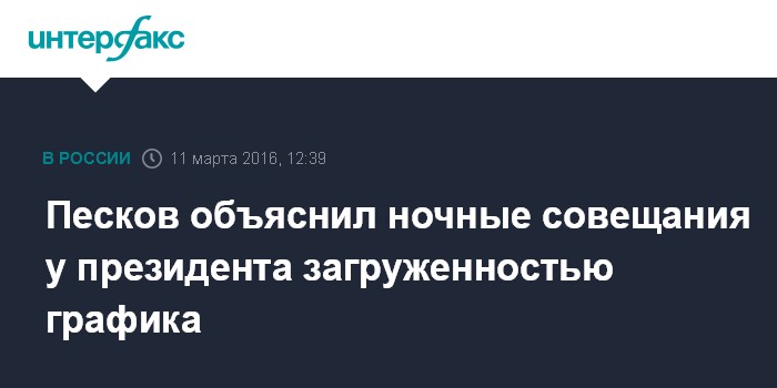 Москва. 11 марта. INTERFAX.RU - В Кремле связали неоднократные ночные совещания у президента РФ Владимира Путина с перегруженностью его рабочего графика.