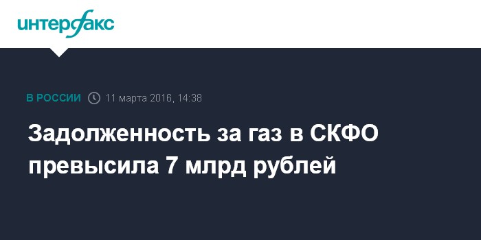 Задолженность за газ в СКФО превысила 7 млрд рублей