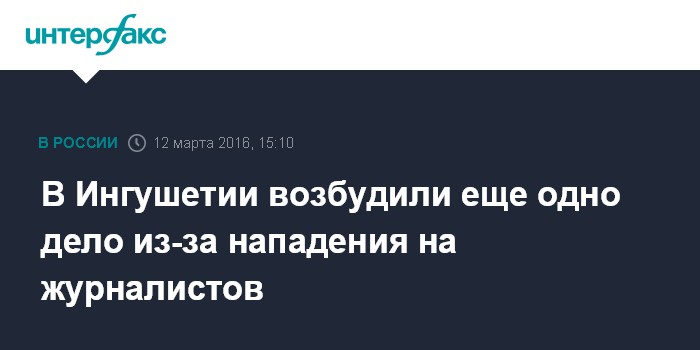 Москва. 12 марта. INTERFAX.RU - По факту нападения группой неустановленных лиц на журналистов и правозащитников накануне в Ингушетии возбуждено еще одно уголовное дело.